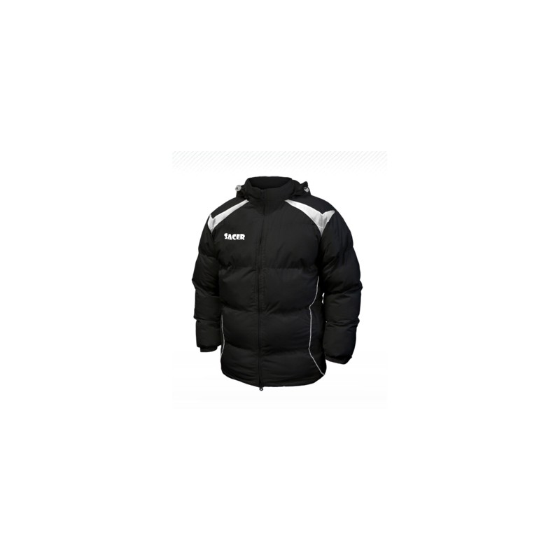 ANORACK COLOR NEGRO, CON DETALLES Y SACER EN BLANCO.