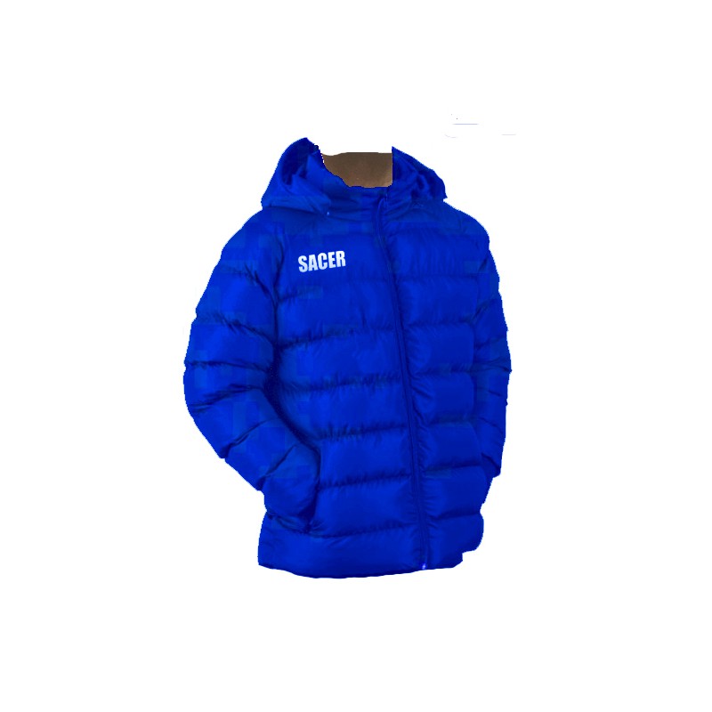 ANORACK COLOR AZUL ROYAL, SACER EN BLANCO.