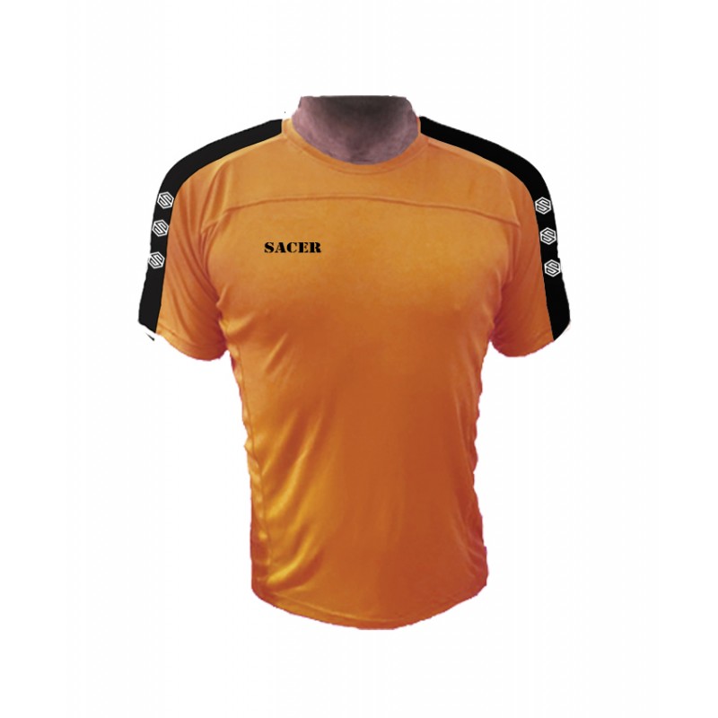 COLOR NARANJA, CON FRANJA LATERAL EN LAS MANGAS EN COLOR NEGRO.