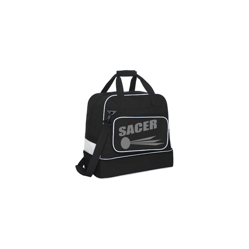BOLSA ZAPATILLERA, COLOR NEGRA CON DETALLES Y SACER EN BLANCO