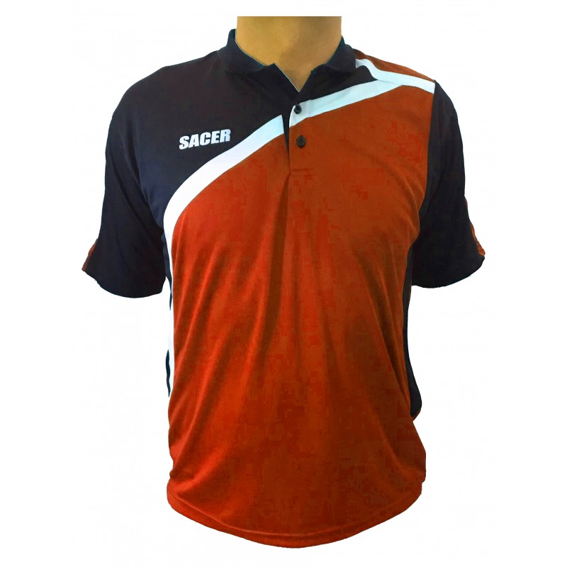 COLOR NARANJA, CON CON DETALLES EN COLOR NEGRO Y BLANCO.