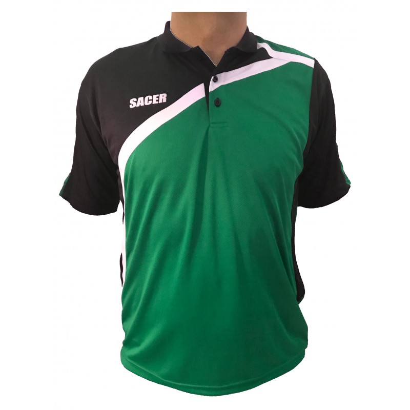 COLOR VERDE, CON CON DETALLES EN COLOR NEGRO Y BLANCO.
