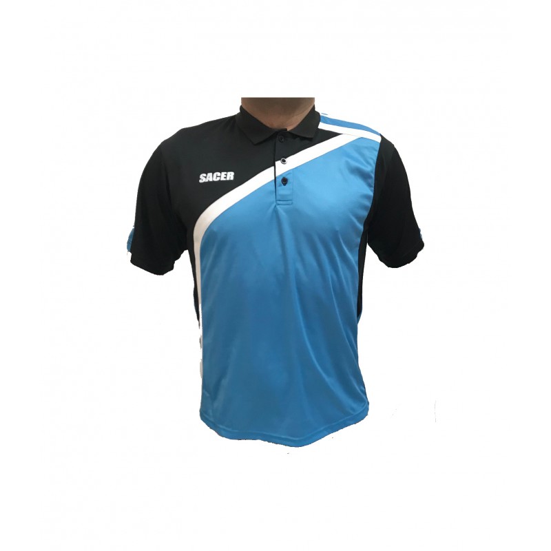 COLOR AZUL CELESTE FLEX, CON CON DETALLES EN COLOR NEGRO Y BLANCO.