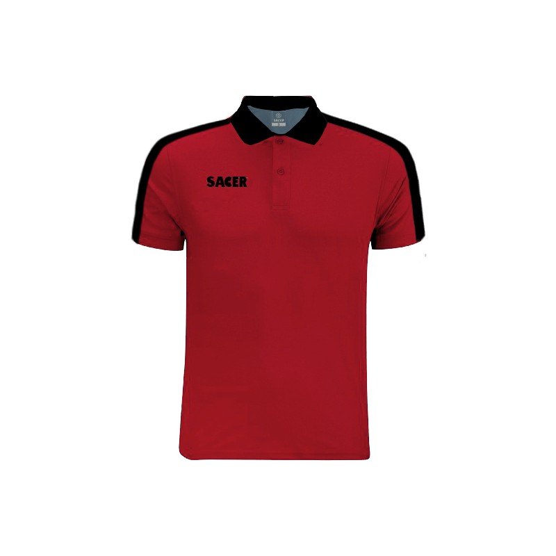 COLOR ROJO CON FRANJA EN LA MANGA EN COLOR NEGRO.