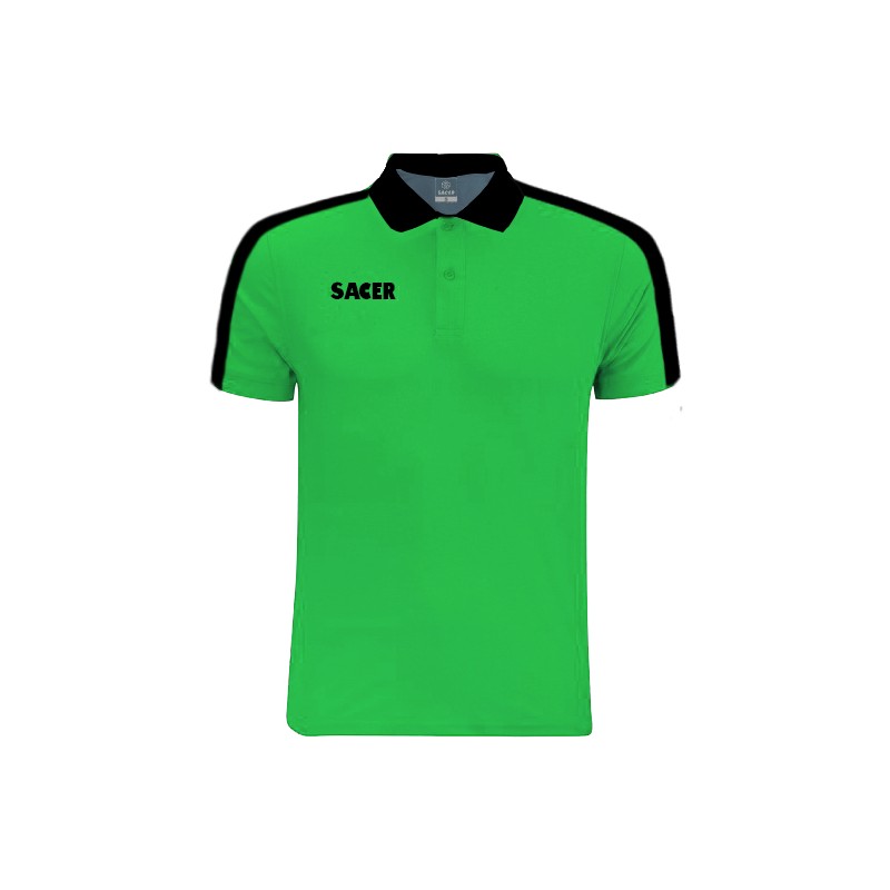 COLOR VERDE CON FRANJA EN LA MANGA EN COLOR NEGRO.