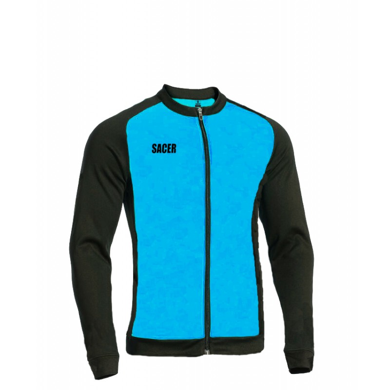 CHAQUETA CHANDAL COLOR CELESTE FLEX MANGAS NEGRAS.
