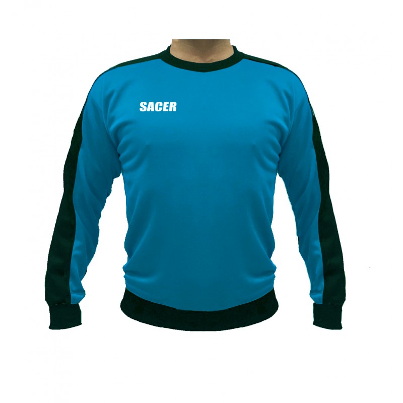 COLOR AZUL CELESTE, CON FRANJA LATERAL EN LA MANGAS EN COLOR NEGRO.
