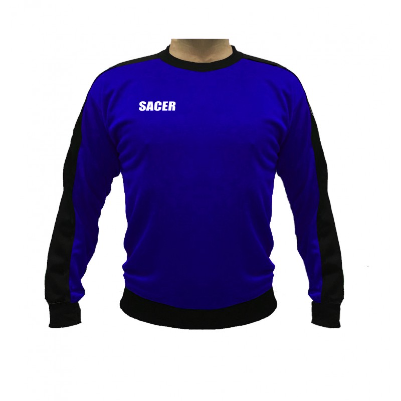 COLOR AZUL ROYAL, CON FRANJA LATERAL EN LA MANGAS EN COLOR NEGRO.