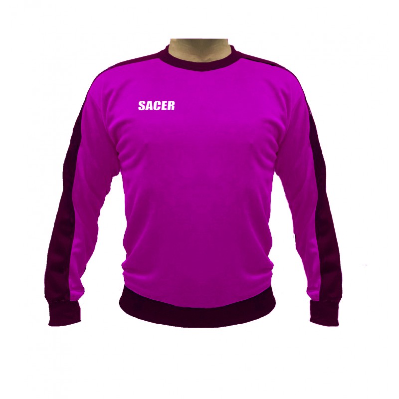 COLOR ROSA FLUOR, CON FRANJA LATERAL EN LA MANGAS EN COLOR NEGRO.